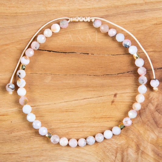 Pink Opal Bracelet - Minimalist Dainty Jewellery, Delicate Natural Stone Beads, Adjustable for Small Wrist, Braided Healing Wristband