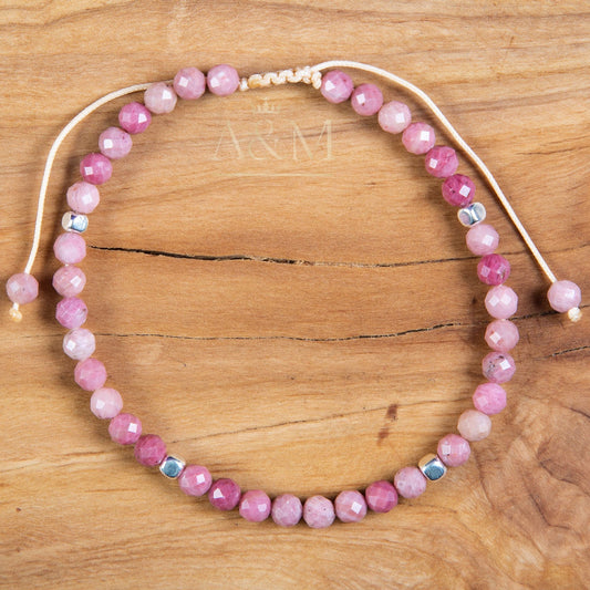 Rhodonite Beaded Bracelet | 4mm Minimalist Gemstone Jewellery | Handmade Adjustable Bracelet | Unique Birthday Gift for Women | Rhodonite