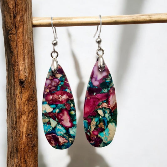Multicoloured Jasper Drop Earrings - Handmade Gemstone Jewellery, Boho Chic Design, Lightweight and Stylish Earrings for Women, Unique Gift
